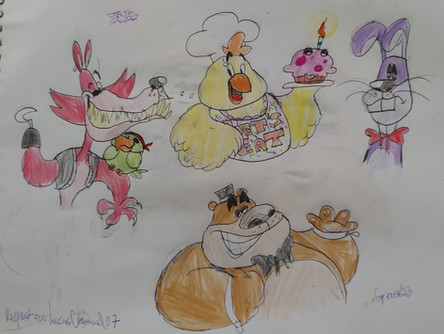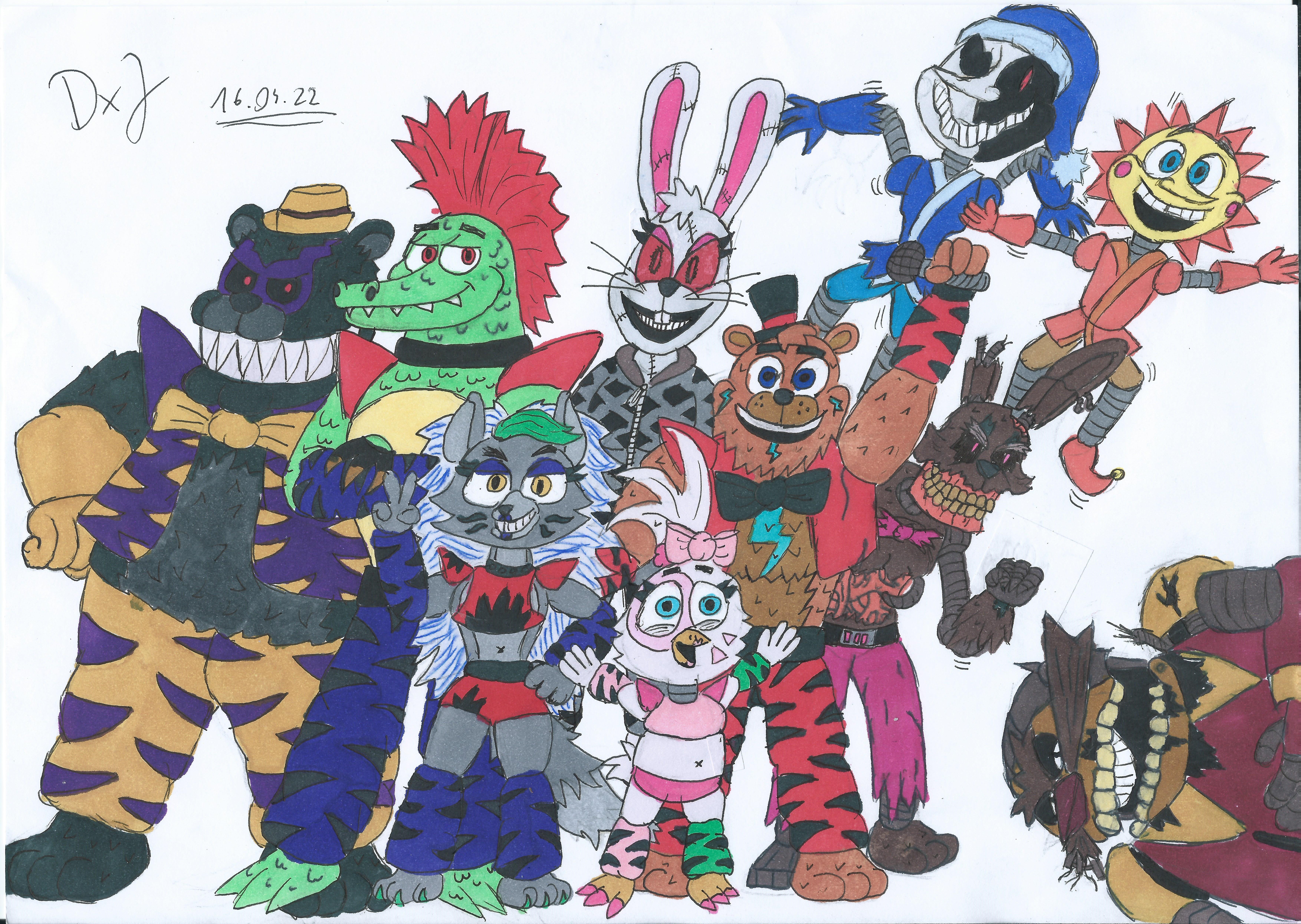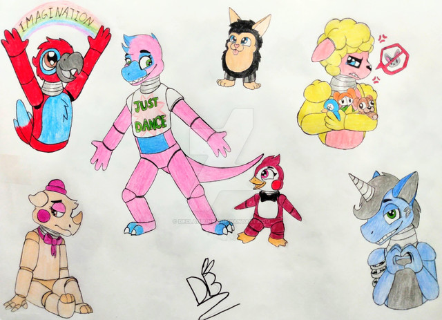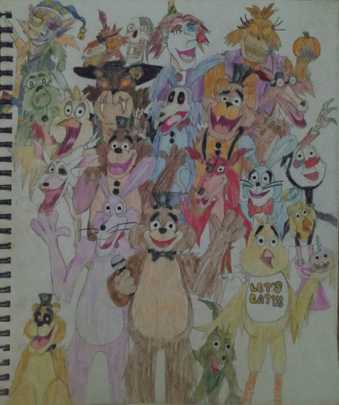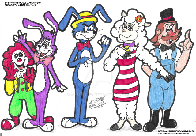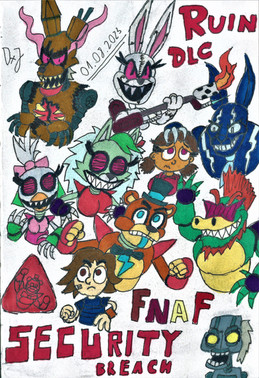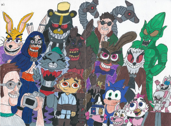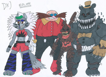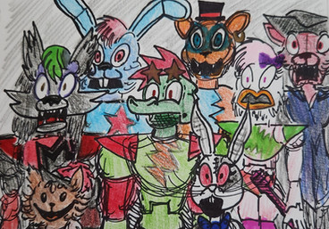 I was bored, so I decided to draw random characters, including:- Withered Bonnie (Chad version)