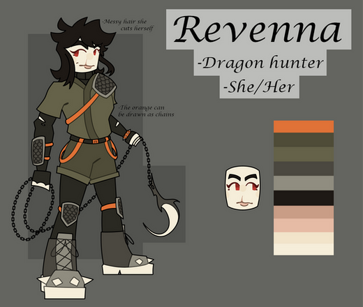 Bio: There's one big thing Revna loves the most- researching dragons and recording everything she learns in her books. Revna is dedicated to her work and sees failure as another step to getting the result she wants. Often she'll dive head first into action, much to the displeasure of her dragons who then have to save her butt whenever Revna gets a little too close to wild dragons during research expeditions. Revna comes from a family tree that held great respect for Boneknappers and Monstrous Nightmares, and viewed them as signs of strength and vengeance. Once Revna was a teenager, she was sent out into the wild near Monstrous Nightmare territory to find her first dragon, as was tradition in her family. Revna later returned with Khale, a young nightmare who has been with her ever since.