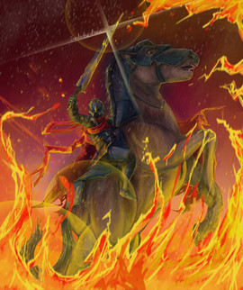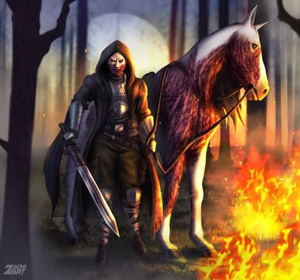 OMG tää on just mahtava!! Aivan mahtavasti piiretty Khaan <3 <3! Viivapiirros on tosi nättiä ja tunnelma on just sopivan karmiva. Ihanasti muistuu se karmivuus ku piti juosta pakoon liekehtivää ratsukkoa xD!