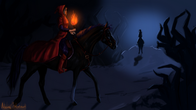 I've always wanted to see a good fanart of Khan and the Cloakrider, as their level was my favorite of all four Starshine games. Khan is also drawn super nicely, as he was my favorite horse of the games.