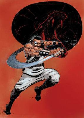 It reminds me a bit of Art of Fighting 2 cover (one of my Shinkirou's fav): Terry seems quite certain about victory.