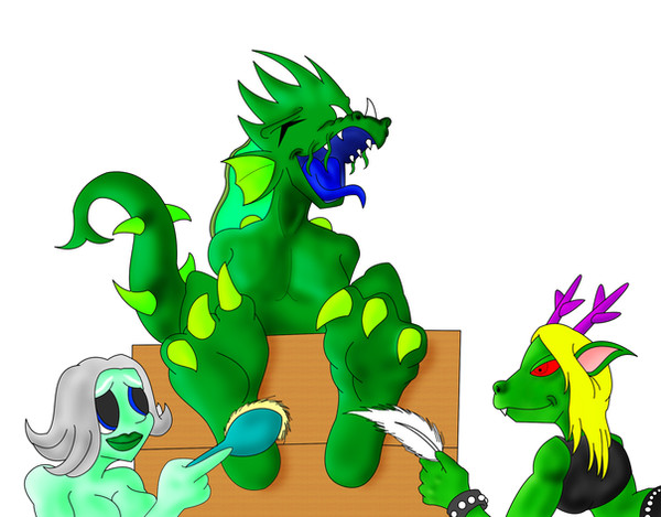 In my quest to find out if dragons can be ticklish, i like to test it out myself.It is about time i tested Abby's tenderness.As i found out ,this is another succes in my quest and will proceed to the next step of it.To just tickle her silly ^^