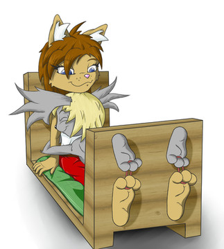 A cute and lovely picture. ^^ I love the devious upside down tickles idea. The only thing that bugs me is the shorts. But all else is pretty sweet!