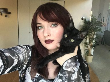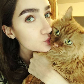 What is your favorite thing to do together? We love to just sit right next to each other, relaxing in peace. I love massaging her and scratching her. I love seeing how loud I can make her purrs. She is my shadow and follows me everywhere I go. She could be super cozy next to me, and 9/10 times if I get up she will get up too and follow me. She LOVES to watch me dance and cook and she loves when I sing, she'll start slow blinking hehe.
