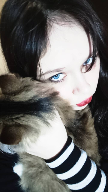 When did you get your pet? I adopted her as a kitten on October 31, 2014, Halloween. I will give credit to my then-bf because I wanted a fluffy cat, and when I picked up Mildred, she was so scared (there was a young child at the house who I saw bothering and "petting" the mommy cat harshly, so I assumed they did that to the kittens too), so I picked her up and she was scrambling to get out of my hands. So I let her down and she hid under a couch. My then-bf said, "Where'd it go?" I said, "Eh they're really scared, they went under the couch, I'm just gonna pick a different one..." He replied, "Well you wanted a fluffy one, that's the one you picked, go under there and get it!" So I was like okay fine... and I'm so glad I did. I knew she wanted to hide, she was scared, so I wanted to leave her be... but leaving her would have been so much worse. I know I'm giving her the best life she could have ever gotten, I was meant to have her. I saved her. No one else deserves her, no one else would love her the way I love her, spoil her the way I do, not hassle or pester her (except maybe when I try to get a photo with her LOL). I'm always thankful for my ex for telling me to go under the couch and grab her again, even though she was terrified. She is the reason I live.