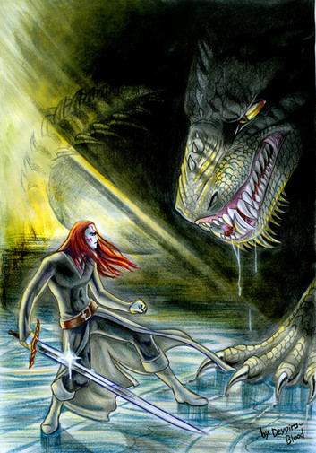 Just as Odo made it from the rope onto the back of the prykon which had carried Asterith away, another beast appeared out of the dark night with jaws open for the attack. The knight could not be sure if it was a third monster, or the first, which had returned to trouble him though he had thought it slain. In any event it has his arm in its taloned grip almost as soon as he was aware of its presence.