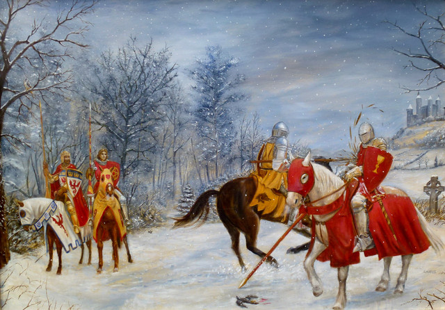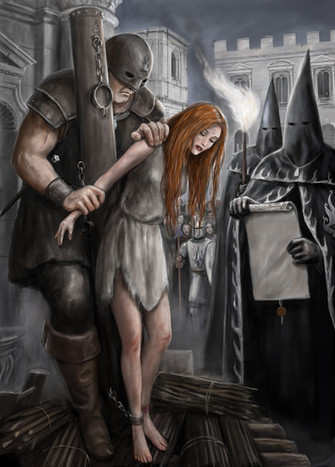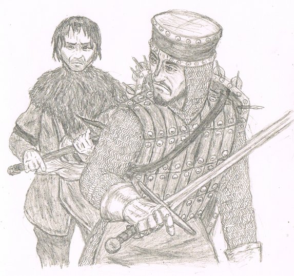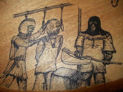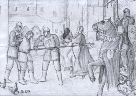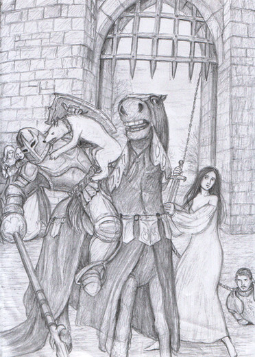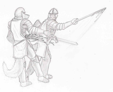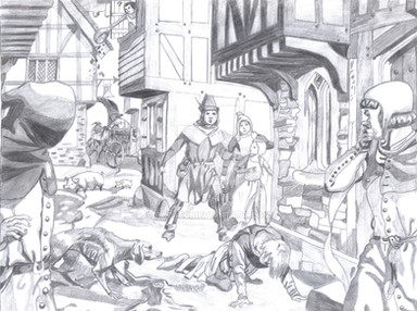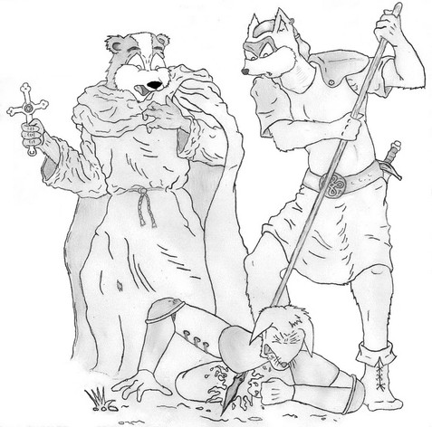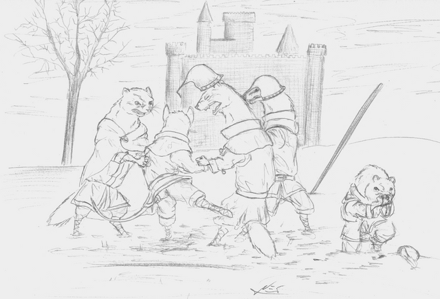 Under the Countess's dark spell, the guards continue beating their erstwhile lord, until growling and barking the earl's old dog comes running. Gallantly it leaps to its masters defence, setting upon the man with the pole axe...