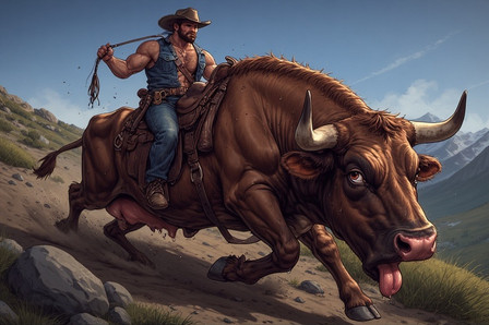 The Big Galoot and Cliff Hanger rodeoing for some extra cash.City of Heroes characters, members of Team Facepunch.