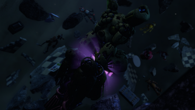 Well, this is one of the wierder posters i've put on here...So when freddy went to space springtrap manged to catch a ride along but fell out then an asteroid came by and he got rekt