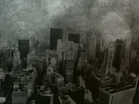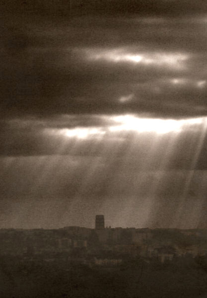 A very claustrophobic mood. That poor little town in black under a rainy sky.