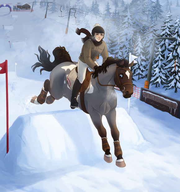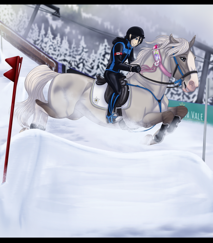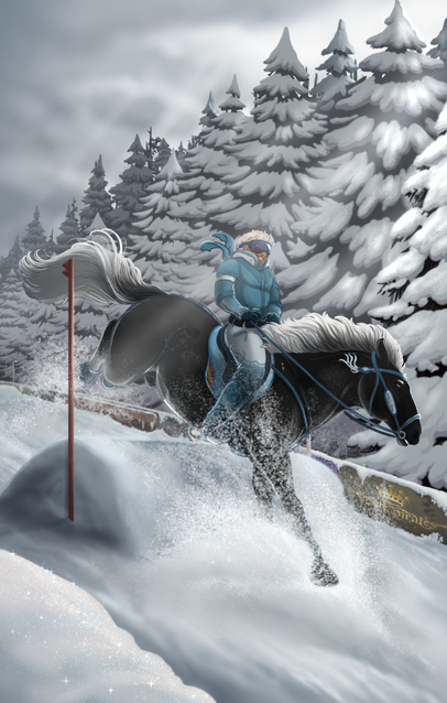As the signal cued their start, the stallion didn't need much pushing to leap into canter right away. His surefootedness was extraordinary. Even when he seemed to slip, the stallion quickly balanced and corrected his position, pushing forward through the deep snow like a bulldozer.