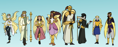 Attar (aka Lux) is the God of Symmetry. Born of light, they appear to resemble the angels of the Elemental's universe. Attar uses she/he/they pronouns, and tends to have a more gender ambiguous appearance, as they do not care what they look like. Attar tends to be a very quiet god, and they chose not to make an appearance to their realm very often. Attar is rumored to have been put into a stasis by Leviathan after an attempt to throw Attar off the Heavenly Throne, replacing them with Ryne, a commander from the Heavenly Army of Light. Attar does care very much for the angels in the Upper and Middle Plains, and has a soft spot for the Watchers (half-angels).