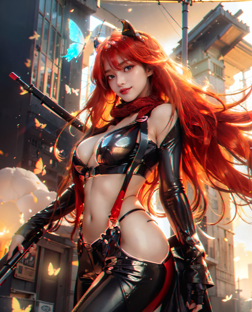 #ai #asian #assassin #bikini #explosion #girl #gun #henchgirl #henchwoman #redhairedgirl #zako #crazyflasher #ai_art #crazyflasher4