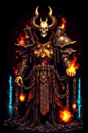 (Base image generated, then converted to pixel art, and post processing affects applied with other software)