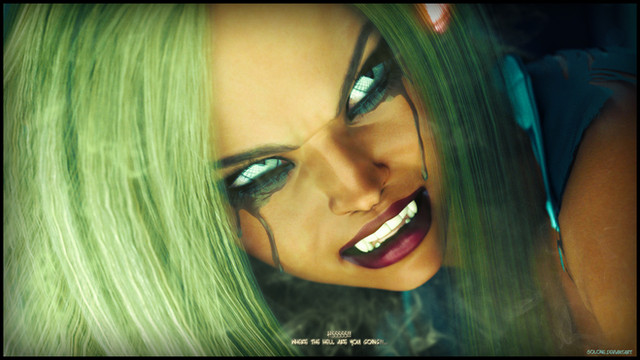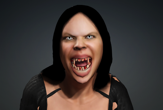 As her once beautiful face becomes that of the beast, Lucy's mind gives into the evil within as her thoughts become fully corrupted by her newfound savage desires and bloodlust...(Lucy is a character from my ongoing digital horror fiction Late Nights republished here [link])