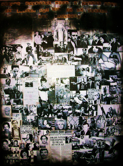 Very moody, though I think all the darkness around the line of imagery sort of takes away from it a little. Cropping it down or maybe adding subtle shadings of images into the dark areas might make for a more intense image.