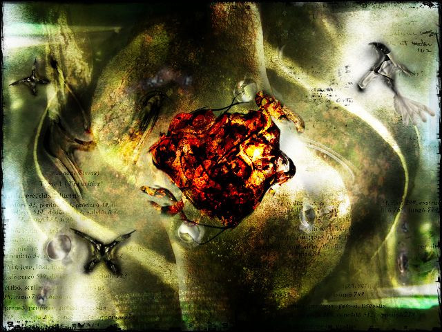 I used mostly brushes and some random stuff I found laying around on my harddrive. I used a cracked wall photo on the right side, as well as some happy accidents on the small light flares floating around that I made using a history brush. I also used a photo of fire for the middle section. So in all not actually a lot of textures, mostly just photos that I used just happened to have the right color tone I wanted. That's mostly how my stuff comes about is just randomly trying leftover photos I had laying around. I'm glad you liked it