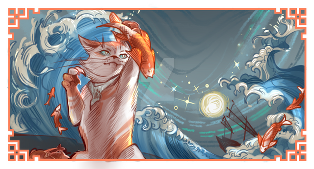 #cats #goldfish #ocean #rendering #trueflight #water #webtoon #animalcharacters #digitalpainting #fantasycharacter #fantasycreature #fantasyillustration #artworkdigital #fight_scene #procreateart #webtooncanvas
