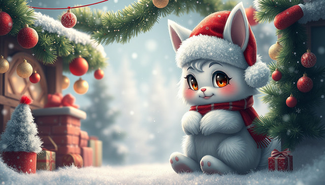 #cat #kitty #christmas #digitalart #cartoon #wallpaper #chibi #fluffy #furry #adorable #ai #anthro #anthrofurry #catgirl #cute #digitalpainting #kawaii #aiart #wallpaper3840x2160