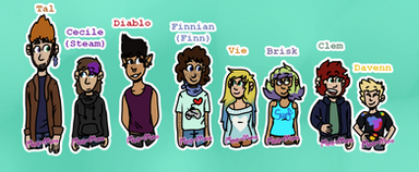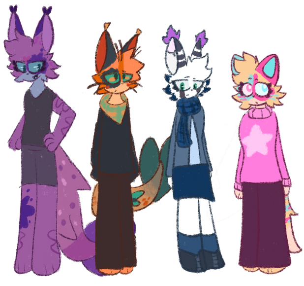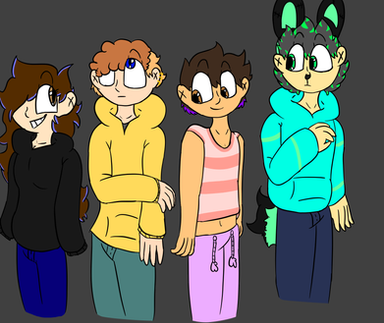 My first four OC's that I made (about 2-3 years ago)From left to right, there's Vie, Finn, Static, and Steam (who has an oil smudge on her face)
