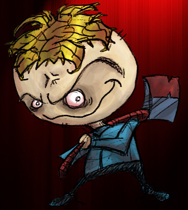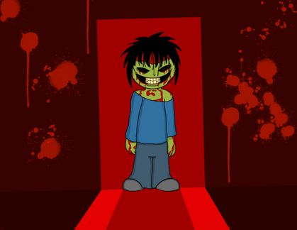 Hehe.. great style! The light causes a really scary atmosphere.. and this freak doesnt look that trustworthy! Good choice of colors!