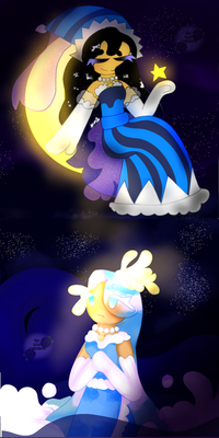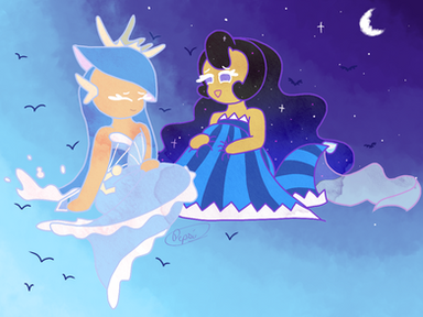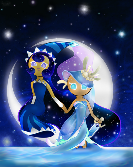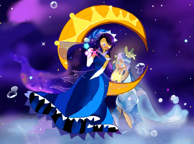 Hoo fuckin boy this took waaaayyy too goddamn long with waaaayyy too many layers, 146 to be exact. most of my drawings dont even crack 80 man. and jesus the file size is fucking huge, theyre usually never past 8MB, then again, its the fact that i set the canvas size to 6800px by 4000px. I just didnt know how to fit it and i didnt want the characters to be too small ;-;There were so many characters to choose from with a lot of great ass designs i liked. But i was stuck between licorice, sea fairy, moonlight, and blackberry cookies. I saw lots of blackberry cookie drawings so i decided not to. I dont know why i gave up on licorice. I chose sea fairy and moonlight cuz on the wiki, i guess sea fairy cookie really likes moonlight cookie blah blah blah lots of lore later i drew them. why tf did i choose sea fairy cookie bruh, i have never done water effects (i dont think) and im fucking terrible at it as you can see now. I dont even have the cookie run games lol, i just know a few of my friends enjoy it cuz THEY WONT SHUT UP ABOUT IT. kidding, i love them all ^w^