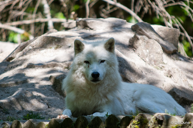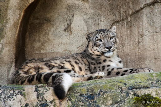 Two Snow leopards resting in a tree's shadow.Photography taken at Zoo of Servion (Zoo de Servion), Switzerland.