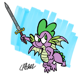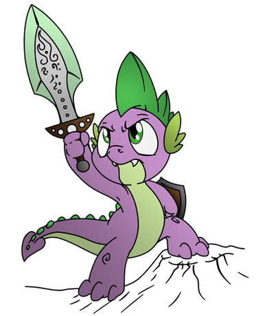 Aw YEAH! Spike with a sword and shield. Finally, he can keep up with Twilight in a fight.