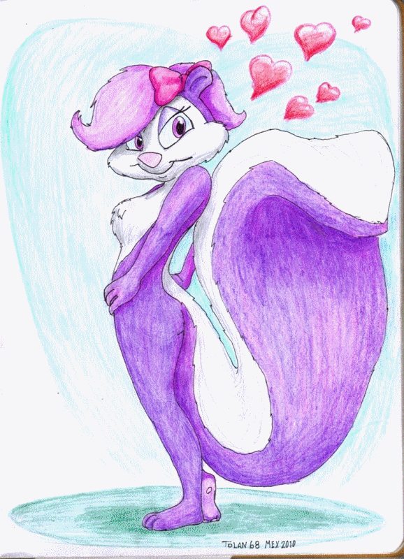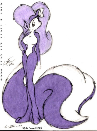Everyone's favorite purple, man-crazy, french-accented skunk (or at least mine...) COLORED!!!Related content