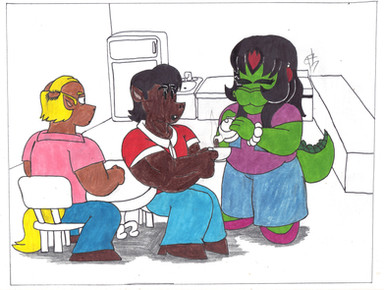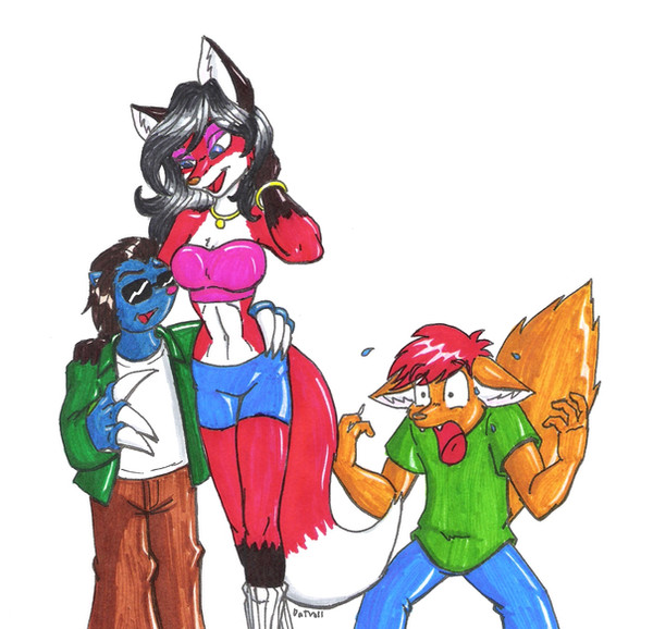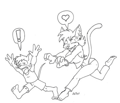 I drew a pic like this during the summer just for the humor of it, and decided to remake it for valentines. For fun, lets call the rhino-girl Michelle. For some reason, she feels like a Michelle...that and calling her Rachael would be sorta lame.Does anyone recall that Futurama episode where they crash-land onto planet Amazonia by chance? (Michelle want snoo-snoo)
