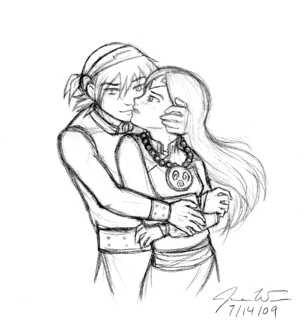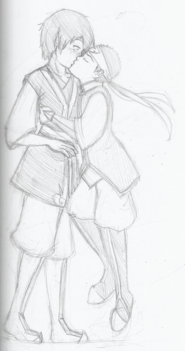 My favorite part is that hands, though (which shouldn't be any suprise at this point, I guess). You did something out of the ordinary with the pose for a kiss like this and put Toph's hands to Sokka's chest instead of around his neck or holding his face, and it comes off as pure Toph for it; it's much more innocent and impulsive. Her hands clinging to him, and his hands clinging to hers, tell me everything about their relationship without any words needed.