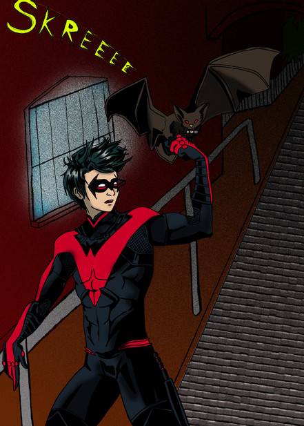 Another picture of Tim Drake as my version of Catlad, Stray, Selina Kyle's sidekick when she's off being Catwoman. SUCH a silly AU idea that a lot of people have already drawn for. BUT I couldn't resist continuing this idea.In my head I kind of went all SRS BIZNIZ with the idea and came up with the name Stay instead Catlad or Catboy (which is CUTE). Tim is such a srs face, he would want to have a cool nickname. X)