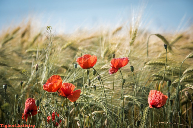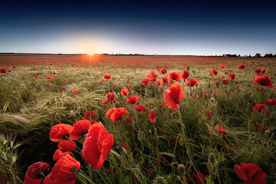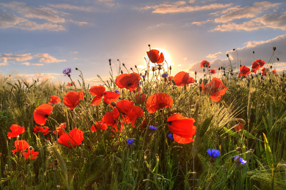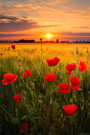 "Spring Garden" - GermanyWild red poppies and a golden cornfield catch the last light of the day in the beautiful rural countryside in Germany.