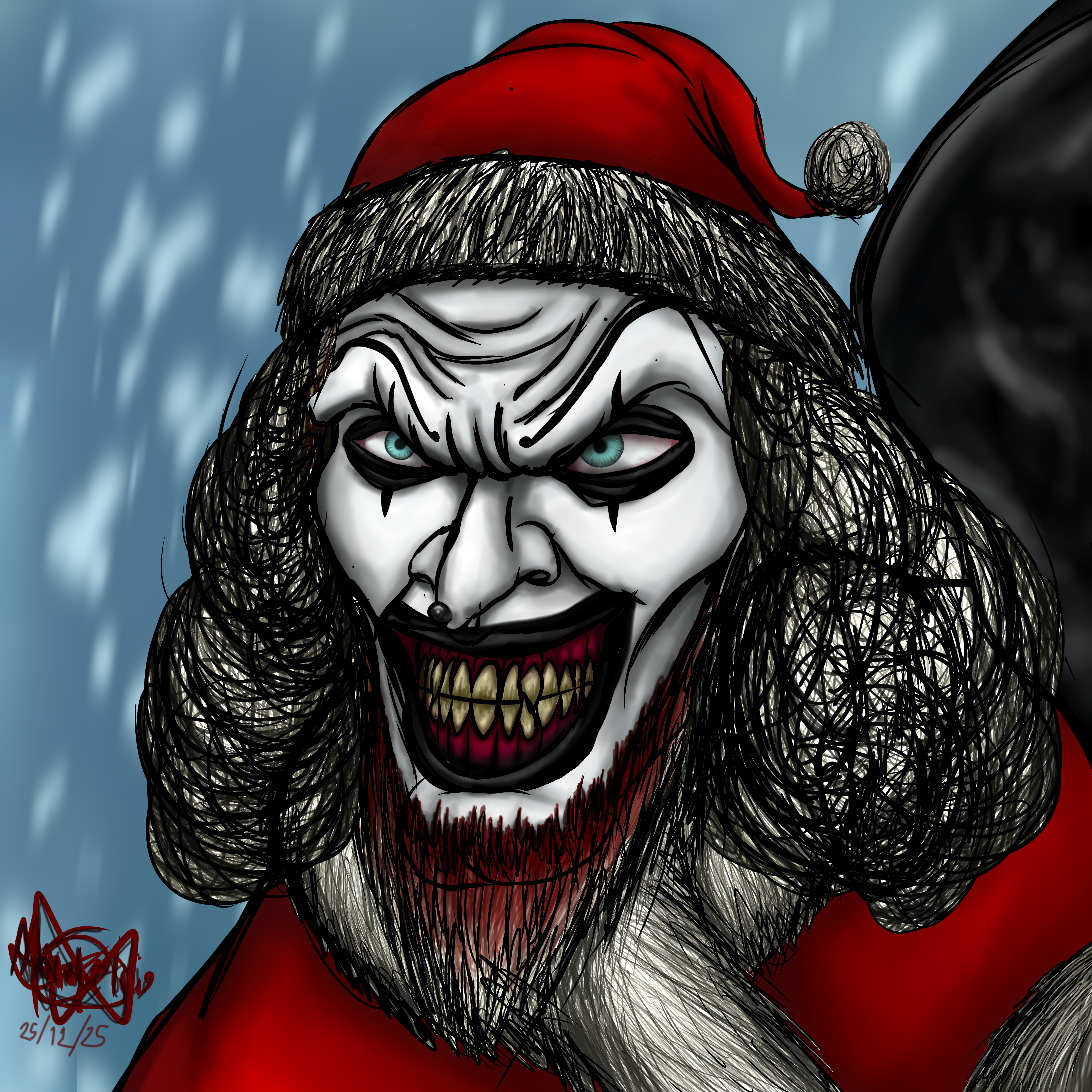 #christmas #clown #candycane #handdrawn #hatchetman #icp #insaneclownposse #joker #jokerscard #juggalette #juggalo #prismacolormarkers #santa #sharpiedrawing #snowflakes #traditionalart #traditionaldrawing #xmasholidays #violent_j #dark_carnival #shaggy_2_dope #psychopathic_records #dave_davids #dark_lotus #xmas2024 #riddle_box