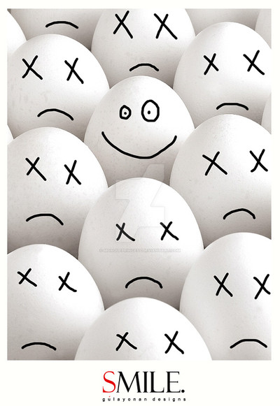 I love this, because when you first look at it, especially the thumbnail, it just looks like a crowd of happy faces, but on second glance you see the frown, and once you've noticed it, it stands out distinctly.