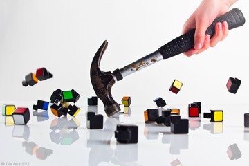 Ever feel like your world is shattered? yeah....This is a setup shot. The hammer is glued to the prop glass (the liquid in it is actually resin) and then held in place using a clamp. The glass dust was dropped on the set and I clicked the shutter. I was hoping to make it look like stop motion.