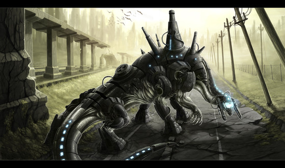 i love trying to imagine what sort of history would lead to this giant mechanical beast roaming around the world