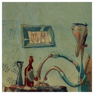 This was a photoshoped compositie from three or four seperate sketches (you might recognise the sink from "Illuminated Soliloquy")Related content