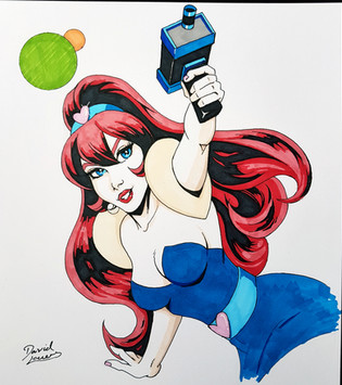 Still playing around with my tablet, this is attempt 3 at producing something. I thought I'd have a go at the lovely Jessica, a characterΒ I've not had much success at sketching before. Also I attempted the hair high light techninique as shown in many online tutorials, and will be using it in future works.