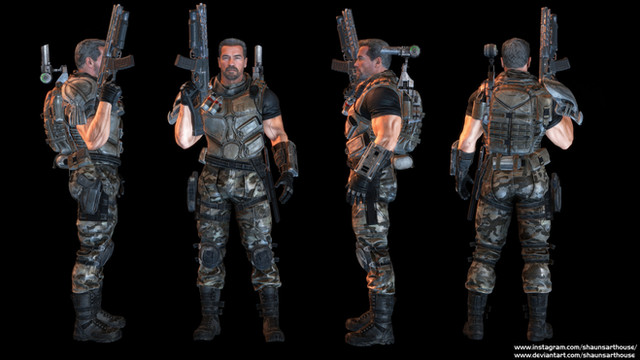 The game has a Quake 1/Doom vibe, fighting demons on a post apocalyptic earth. Sculpted in Sculptris and 3d Coat. Painted and rendered in 3d Coat. Background and additional effects Photoshop.