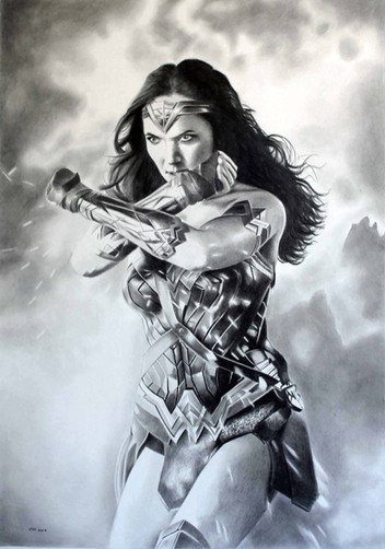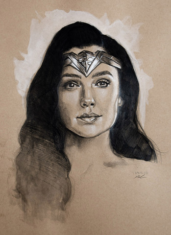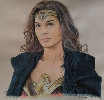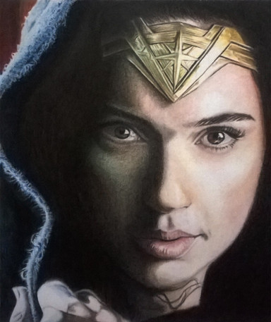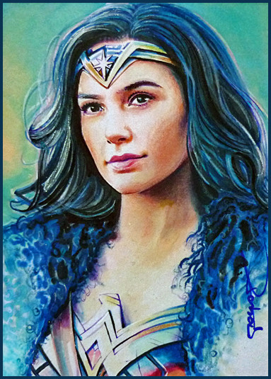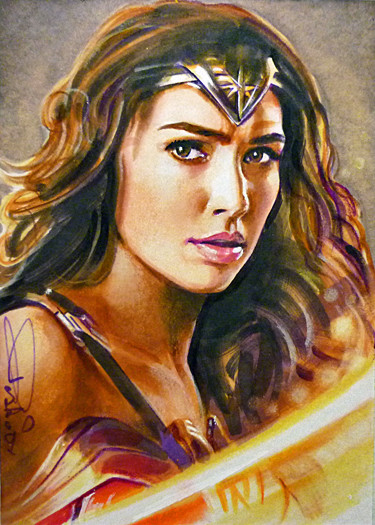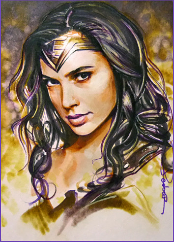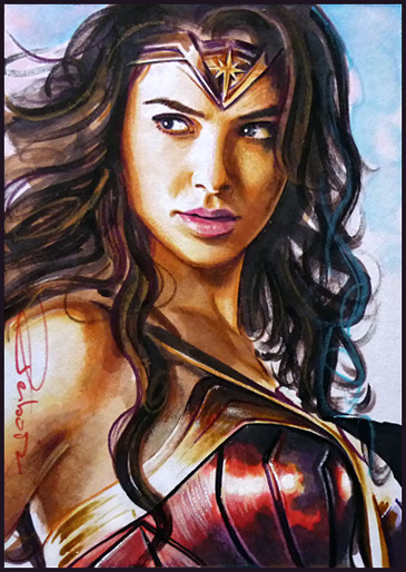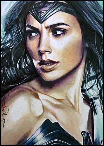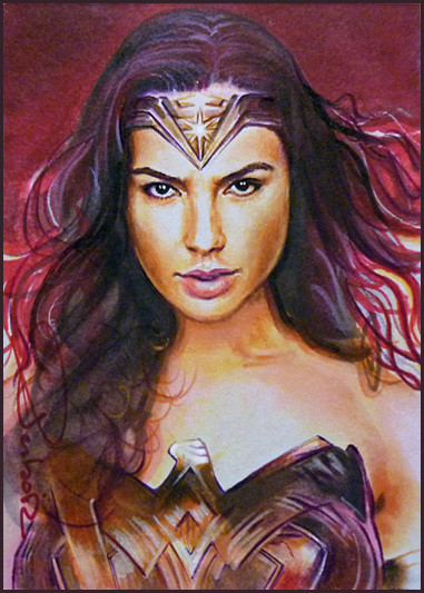Gal Gadot as Wonder Woman, one of three sketch cards I recently did; I guess I'll probably do more when her movie is releasedwatercolor pencil n marker
