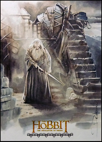 watercolor/marker licensed art with MGM/New Line Cinema for the official Hobbit set : Desolation of Smaug1/21 pack inserted original art