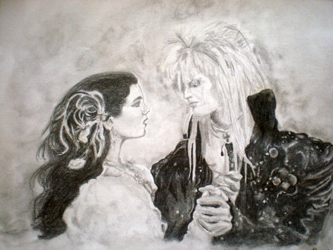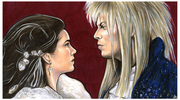 commissioned sketch card 2.5*3.5 inch of Labyrinth 1986 movie with David Bowie and Jennifer Connellya new 'retro' sketch card tomorrow!