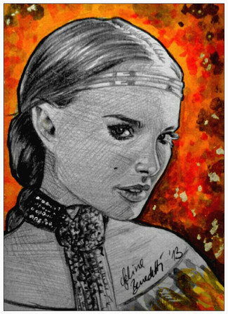 2.5*3.5 inch sketch card featuring Padme in her rainbow dress by the lakevisit SW folder to view all my SW work!