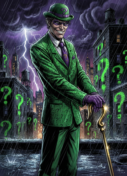 Here's my drawing of the Riddler from The Batman! Since the Riddler is my favourite DC villain, you have no idea how excited I am for the upcoming movie, especially since the Riddler will be the main antagonist! I always did say that the Riddler has the potential to be a much darker and scarier villain, much like John Doe, John Kramer and the Zodiac Killer. Hope you guys like it!