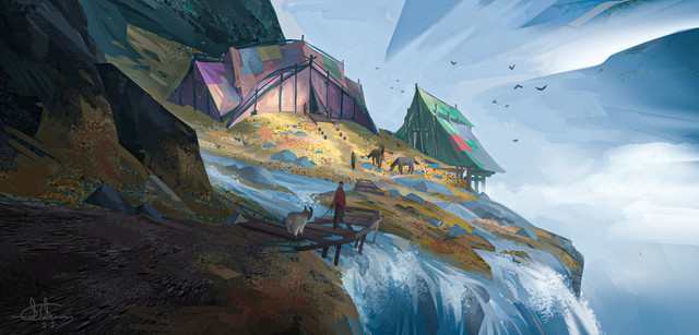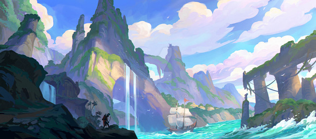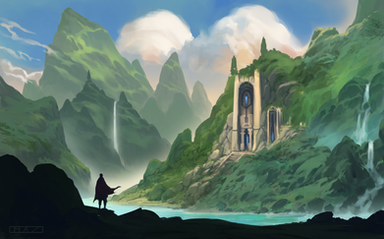 #2dart #ancient #background #cliffs #conceptart #digitalart #digitalpainting #environment #fantasy #light #nature #ruins #temple #visual #wild