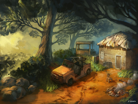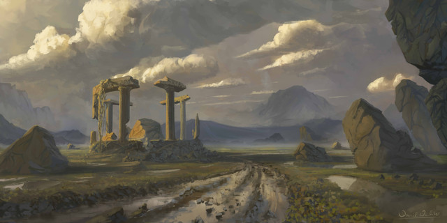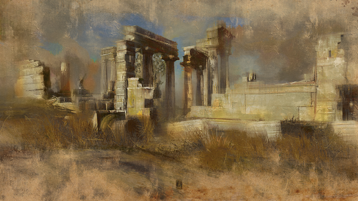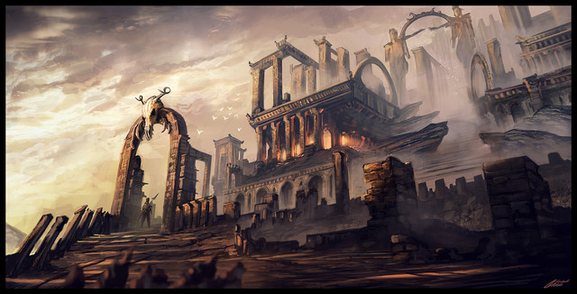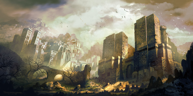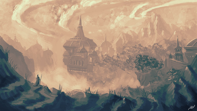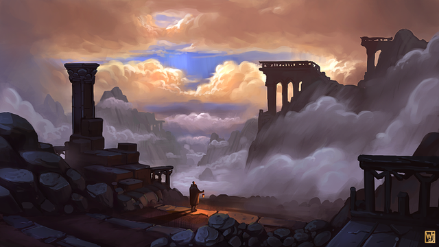 #ancient #artwork #digitalart #landscape #mountains #painting #ruins #scenery #illustration #lightning #watercolorpainting