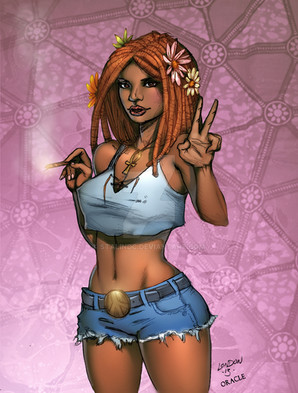 #blonde #blunt #dreads #girl #bigboobs #dreamcatcher #lookingback #tattoo #painttoolsai