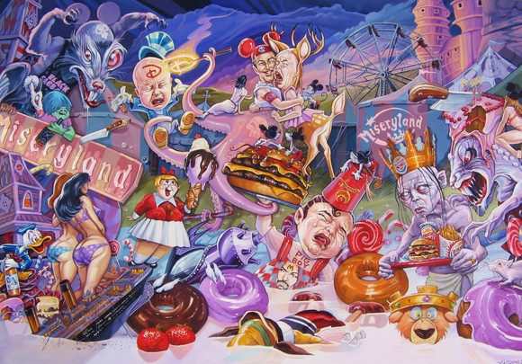 24 x 36 Acrylic On Canvas. A mash-up of Wonka and Robert Williams "Appetite For Destruction"Related content