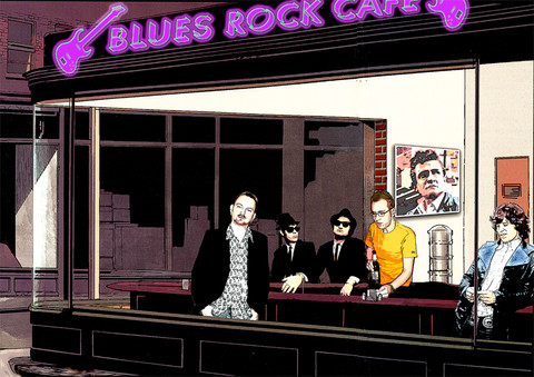Hilarious mix of Breakfast Club and the Night Hawks painting.